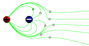 Try to simulate this with the applet by moving the source charges as close together as possible, selecting field points that are far from the source charges, and displaying field lines through these field points.